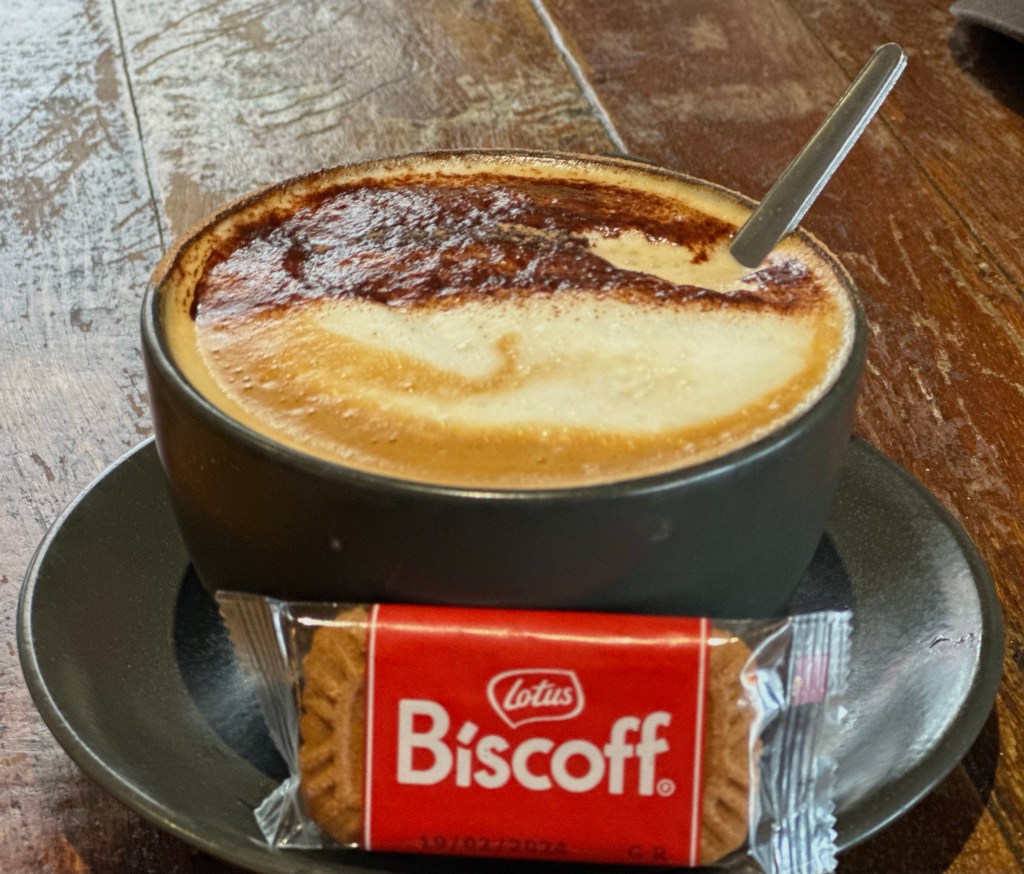 We left the hotel about 7:15 and walked, walked, walked to Terminal 2 through security to a gigantic seating area surrounded by duty-free shops where many people were busy loading up.  We had not eaten breakfast, so Jim and I went in search of coffee with hundreds of other caffeine-seeking people at 8:00.  Our strategy was divide-and-hunt; I stood in line at Costa Coffee while Jim searched for other options.  I was in the lucky line which moved rapidly so I texted him to return.  The ambient noise was so loud and amplified in my hearing aids that I was functionally deaf.  I needed him to negotiate our order with the counter person.