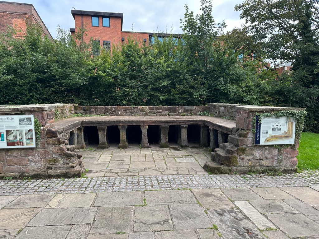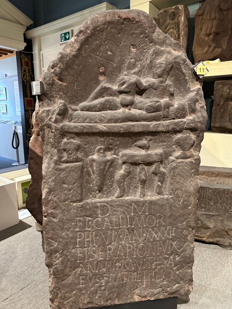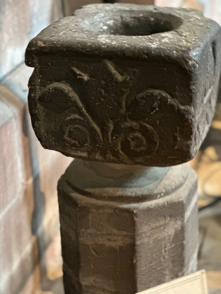 After a good night’s rest we embarked upon Rick Steve’s’ walking tour of York. Luckily it was another perfect day. First stop was the ruins of St. Mary’s Abbey first built in 1088 by William the Conqueror and destroyed by Henry VIII during his reformation of the church. The Yorkshire Museum was built on top of the Abbey’s ruins. Unbelievable care was used during this construction carefully preserving all the ruins in place in the lowest floor of the museum. The museums rooms on that level are built around the remaining columns and walls. Even an original mosaic floor from the Abbey is there. There are also extensive museum displays of the Roman period of York’s history and prehistoric times, but it was the Medieval Wing that enthralled us.