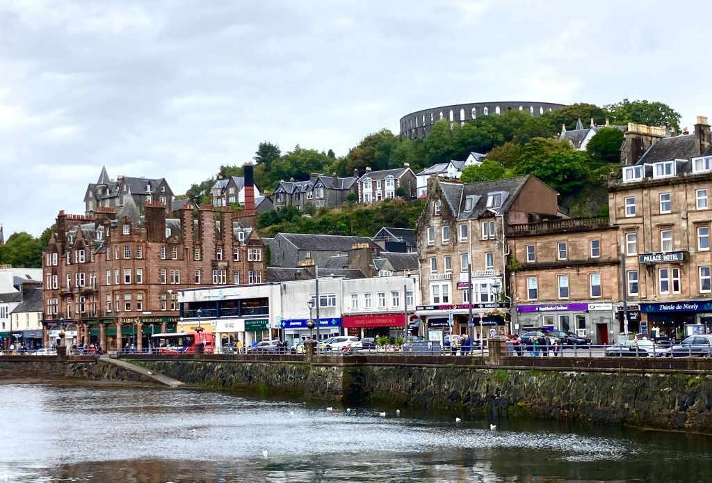 Our next full stop was at Oban, Scotland’s premier seacoast town. It has a flourishing fishing industry and the harbor is filled with boats and ferries taking riders to nearby islands just off the west coast of Scotland. Haddock, mussels, oysters, scallops and shrimp abound on the docks. We lunched outdoors on freshly caught fish and chips, which we watched cooked before our eyes on an open air grill.