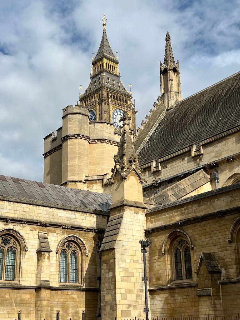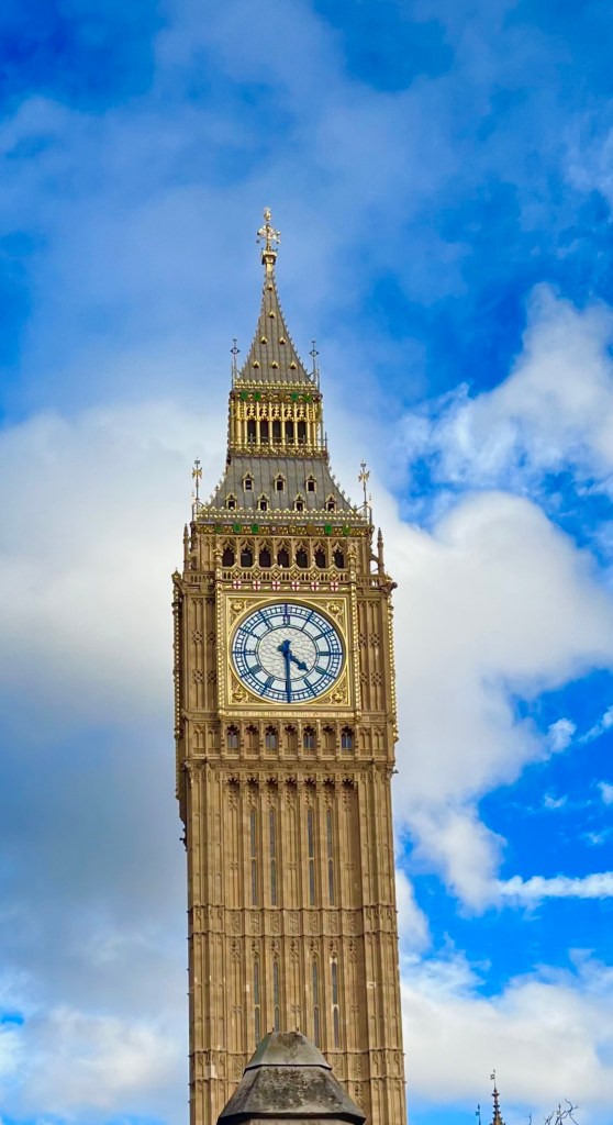 The first thing we saw was famous “Big Ben,” recently refurbished, painted a brilliant blue, gilded and restored on top of Elizabeth Tower at the corner of Westminster Palace. Big Ben is actually the name of the bell in the tower not the clock, but nobody quibbles about that distinction.
