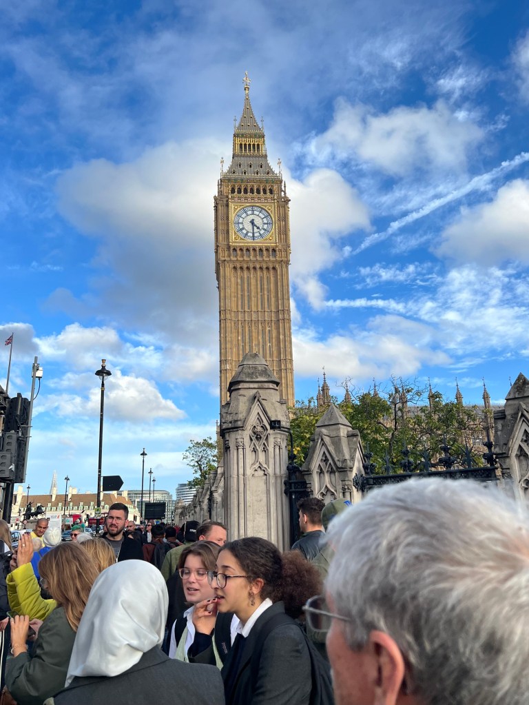 We stayed close to avoid getting separated or pushed apart in the crowd while crossing the road toward the Westminster Palace, commonly called Houses of Parliament where the House of Lords and House of Commons meet.
