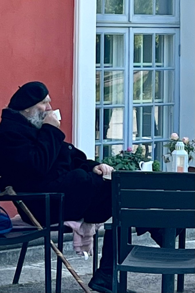 Their two sons, Reuben and Dominic, live not too far away. Reuben and his partner are near Bristol, while Dominic lives in a narrow boat which he kitted out and navigates along the canals. They also have a cat who invites cat friends into the garden. Some friends! They help themselves to his food and disturb his tranquility.