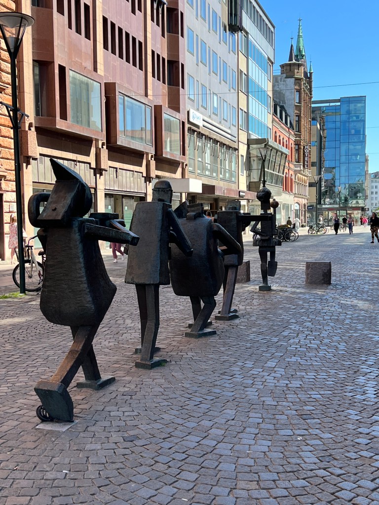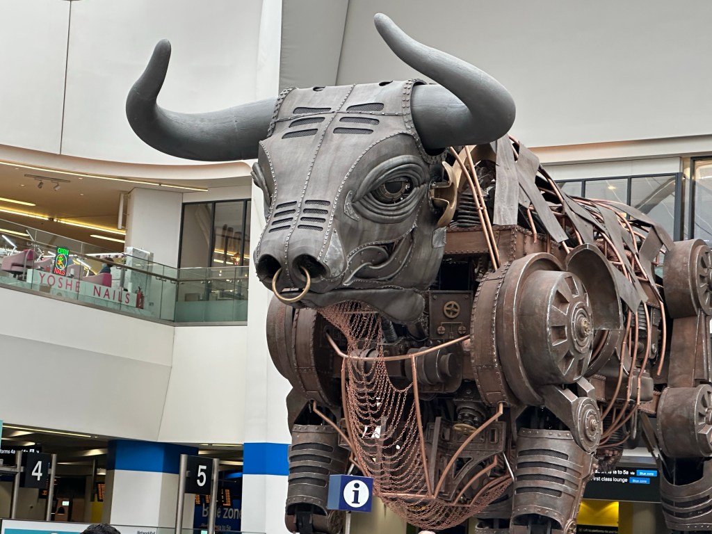 The last morning in Cambridge began with Sainsbury’s croissants and coffee. Ibis Hotel Cambridge is located about 100 meters from the station, a quick walk. With reserved seats in car C close to the luggage racks, the 2.5 hour trip to Birmingham began. Birmingham’s new New Street station is a transport nexus with the Birmingham Bull in the center to welcome visitors.