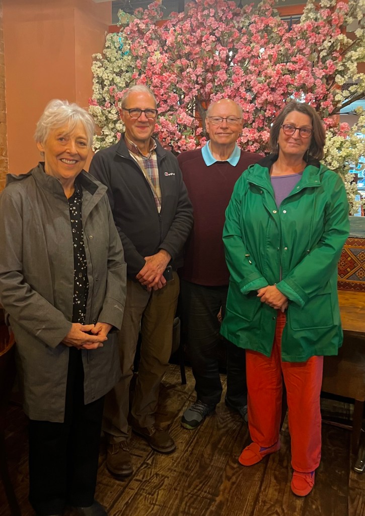 At 5:00, they arrived in their shiny red VW and whisked us on a tour of the Moseley area of Birmingham filled with gorgeous Victorian homes. Judith told us about the history of the area and the changing demographics—what has been lost and what has been gained. After almost 30 years in the neighborhood, they are moving to a less urban area in a tech-savvy and environmentally tuned house.